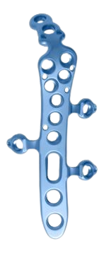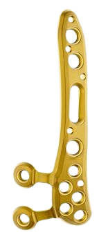 INTEOS® Coronoid System Die INTEOS® Coronoidplatte ist eine der jüngsten Ergänzungen des INTEOS® Ellenbogenplatten-Portfolios und ist für die primäre Behandlung von Coronoidfrakturen indiziert. Diese werden häufig durch eine Subluxation oder Dislokation des Ellenbogens verursacht. Anatomische Reposition und starre Fixierung sind der Schlüssel zur Wiederherstellung einer konzentrischen Ausrichtung des Ellenbogens. Die Platten haben eine minimale Aufstandsfläche und ein schlankes, flaches Design, um Weichteilirritationen zu minimieren und zusätzliche Osteosynthesen, zum Beispiel am Olekranon, zu ermöglichen. Die Plattengeometrie leitet die proximale iuxtaartikuläre Plattenpositionierung, die wiederum die Platzierung subchondraler Raftingschrauben zur Unterstützung der reduzierten Gelenkfläche ermöglicht. Ein zusätzlicher proximaler Plattenhaken ermöglicht die Fixierung von sehr kleinen Abrissfragmenten. |