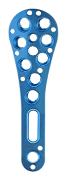 Die INTEOS® proximale Humerusplatte ist eine anatomisch vorgeformte VA-Verriegelungsplatte und ist in links- und rechtsseitiger Ausführung erhältlich. Sie kann für die Primärversorgung von Frakturen des Humeruskopfes und der proximalen Metaphyse, auch bei Ausdehnung in den Humerusschaft, verwendet werden. Um das Risiko von Impingement und Irritation der Rotatorenmanschette zu minimieren, wird die Platte vergleichsweise distal auf der lateralen Seite des Humeruskopfes angebracht. Die Platte bietet dem Chirurgen 9 Schraubenoptionen im Humeruskopf, mit maximal 3 Verriegelungsschrauben zur Abstützung des Kalkars. Es gibt voreingestellte Verriegelungsschraubenrichtungen, die nach kranial in den Humeruskopf vorgewinkelt sind, um den Widerstand gegen das Herausziehen zu maximieren und gleichzeitig das Risiko einer Schraubenspitze zu minimieren und dazu beizutragen, die Hebelarmkräfte der Schultermuskulatur in eine verbesserte Stabilität des Konstrukts umzusetzen. |