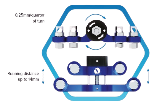 Jede Vierteldrehung bewirkt eine Drehung des Knochensegments um 0,25mm gegenüber der vorherigen Position.